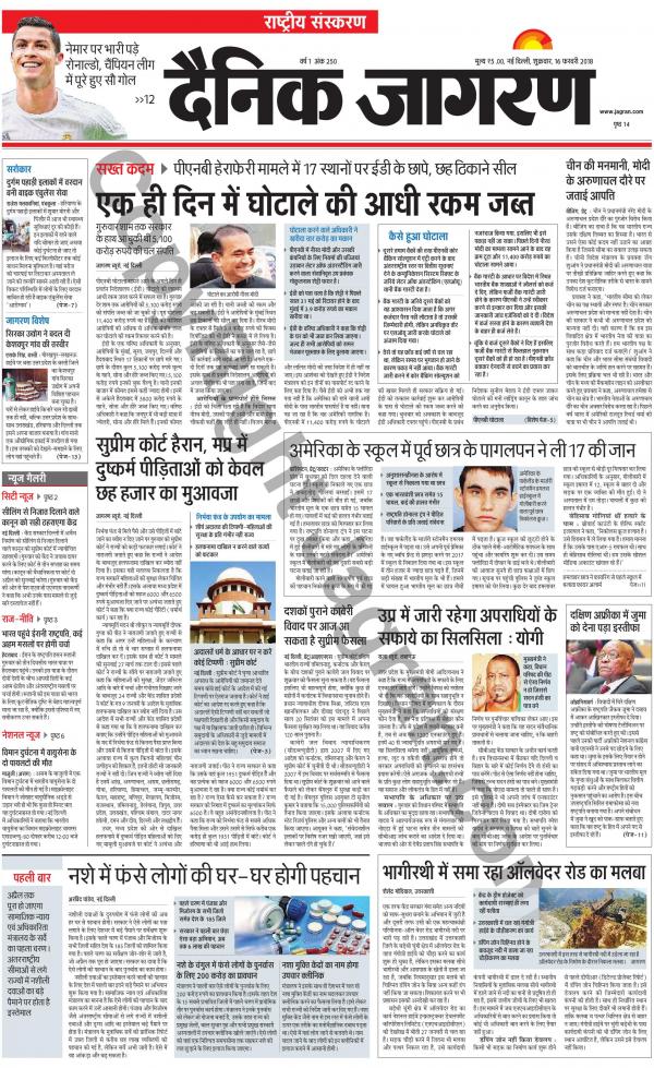 In the month of may 2006 dainik jagran was voted as the largest source of news within the print media according to a bbc reuters study. Dainik jaran up epaper covers latest hindi news from up region. Most trusted online agra hindi newspaper brings latest hindi news online. Read today up news on one of the most trusted hindi newspaper in up brings latest news from up around the world in hindi.