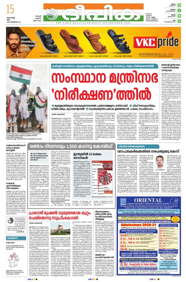 Kochi thrissur kozhikode kannur bangalore supplement. Deepika is a malayalam newspaper.